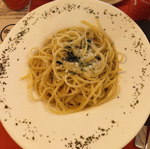 Leider alles etwas unorganisiert, weshalb unsere Reservierung per Mail auch nicht richtig notiert wurde. Der Empfang war auch eher unfreundlich und wir wurden notgedrungen an einen Tisch gesetz. Von italienischer Gastfreundschaft und Freundlichkeit leider keine Spur. Unser Essen war leider auch eher unteres Niveau und die servierten Nudeln noch deutlich über al dente. Das servierte Chili Öl war leider aus der Plastiktüte und ein Massenprodukt. Ich habe es deshalb nicht mal probiert. Das Ambiente hat Bistro Flair. Der Boden war leider auch nicht sauber obwohl das Restaurant abends erst kurz davor wieder geöffnet hat. Leider kann ich das Restaurant deshalb nicht empfehlen. Aber das ist meine Meinung. Die Pizza auf den Nachbartischen sah allerdings wirklich sehr gut aus! Vielleicht sollte man hier eher Pizza essen. Update auf die Antwort des Besitzers. Leider sind Sie nicht auf die schlechte und billige Qualität des Chili Öls und die harten Nudeln eingegangen. Des weiteren haben wir einen Platz bekommen, das stimmt. Aber unsere Reservierungs Email wurde gar nicht gelesen und nur eine automatische Bestätigungs Email rausgeschickt. Wir hatten Glück das wir einen Tisch bekommen hatten da noch zufällig etwas frei war. Dieser wurde uns nur mit Zähne knirschen zugewiesen. Wie gesagt, Höflichkeit und Gastfreundschaft sieht anders aus.
