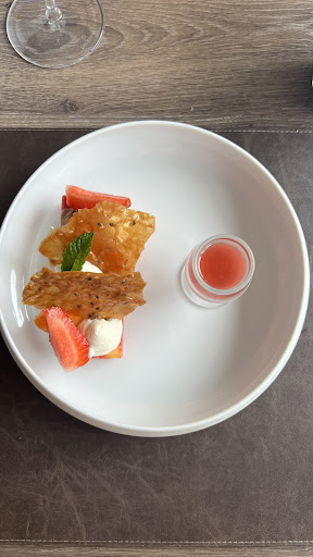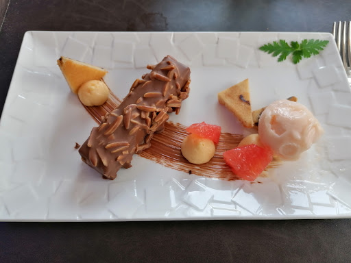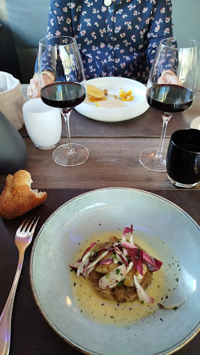 Read moreNous avons déjeuné dans l extension au fond a droite...c est sombre les matériaux le gris et le bois foncé ..pas la meilleure table surtout si vous n êtes pas a côté de la fenêtre il manque dans la décoration de la couleur Un ou deux tableaux comptenpora ins ou sculptures de belles tailles serait bien venues Pour donner un peu de vie Les entrées et les plats sont très bien Nous avons aimé le foie gras et la st jacques Pour les entrées Le veau avec la st jacques ...le poisson. .pour le plat de résistance Les desserts La demi sphere vanille m a un peu déçu Je m attendais a un goût plus prononcé a la vue très appétissante du dessert et ne souffre pas d agueusie !! Le brownie.......sans surprise.... Belle présentation des plats Nous avons passé un bon moment Reviendrons au changement...