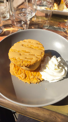 Delicious food for both adults and children. Lovely ambience with tablecloths, wall decor, beautiful dinnerware and soft carpet underfoot. We enjoyed tender veal, fish, apple tart and cream Broulee. The children had good sized fish and steak with lots of chips. Also a cute dish of ice cream with smarties. I enjoyed a delicious spritz Normand as well. Highly recommend for a high...