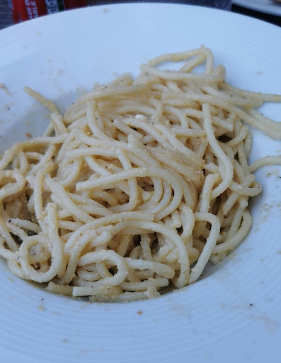 Pour le reste voici la soirée: Arrivés a 19h, la patronne qui nous fait patienter je sais pas combien de temps pour nous placer, du coup on se dirige nous même pour nous assoir ça l'a fait s'occuper de nous! Ensuite, on tombe sur un serveur, novice en restauration qui avait forcément du mal à prendre correctement la commande qui n'entendait pas très bien à priori. Ce serveur évidemment ne m'annonce pas que le seul plat du jour n'est pas dispo (que j'ai voulu prendre) alors qu'il est indiqué sur la carte (et qui n'a surement pas du être servi le midi). Les boissons qui arrivent avec un certain temps et on nous ouvre même pas les bouteilles on a du le faire nous même. Ensuite la commande est envoyé en cuisine et on a du attendre 1h pour recevoir une seule pizza! Pourquoi celle de mon fils est arrivé 10 minutes après? Et mon plat de linguine....insipide, fade, aucun assaisonnement, baignant dans une assiette de sauce.....le pain on l'a jamais eu, la carafe d'eau on a dû demander a la 3e tentative a la serveuse (celle qui travaille ici depuis longtemps et qui gère à merveille ses tables et le service) et qui nous l'a ramené directement. Les autres tables qui commencent à gueuler car toujours pas servis. On paye finalement a la caisse et c'est limite il a fallu demander à la patronne qu'elle compte la boisson de mon fils a la place de la glace qu'il n'a pas eu (je dis limite car la patronne nous l'a passé ainsi en précisant que normalement c'était pas possible). Dernier point et non des moindres en cette période de Covid-19, même si c'est en extérieur, oubliez les 1m ou 1,5m avec les tables voisines!!