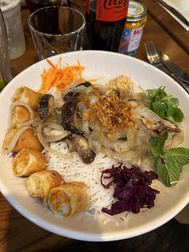 Read moreFranchement le bo bun poulet est pour moi une gourmandise !!! Mais la cela à été la grande déception lors de l'arrivé de mon plat car il manquait une bonne partie de la recette. Pas de cachettes grillés concassés, pas de basilic thai ciselé, pas de concombre émincé , pas de coriandre ciselé ,pas de menthe ciselée , mais à la place une branche avec 3 feuilles ? pratiquement pas de soja ainsi que de salade . 1 petit nem industriel ,peut rempli, en trois morceaux .Pour la maudite sommes de 14,90€ sans boisson ( Prix médian en ile e France : 9,90€ sans boisson , constaté sur le net ) Donc si tu aimes le bo bun poulet c'est pas la bonne...