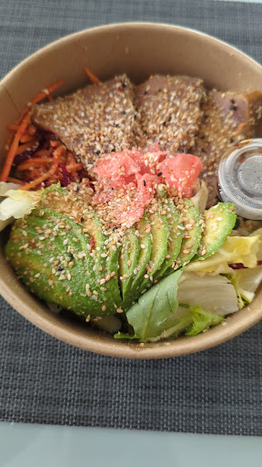 Commande passée à emporter via just eat à 17,49€ pour un bowl tuna. La commande a été disponible en 40min environ. Vis a vis du prix, j'ai été déçue par la qualité du plat : riz vinaigre, carotte et betterave cru, salade, avocat, une quart de citron, un peu de gingembre et 3 tranches de thon. Les tranches de thon étaient généreuses mais manquaient de goût, le reste du plat manquait globalement de travail. Le gingembre rose en tranche est difficilement intégrable au reste du plat. Pour finir sur une note positive, le riz était bon et...