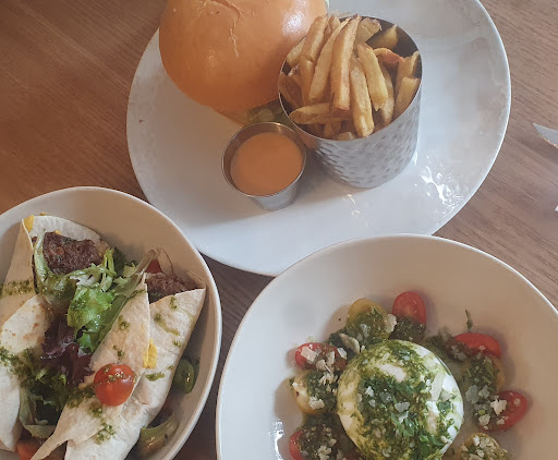 Read moreAlors, la nourriture est généreuse et délicieuse ! La salle est sympathique avec les assises en velour mais les boissons sont médiocre... pas de jus de fruits frais pressé (sauf citron), le chai latte et le chocolat chaud ne sont pas préparés correctement et les verres de l'apéro sont restés vides sur la table jusqu'à notre départ 2 heures 30 plus tard. Parce que oui, le service est lent, très LENT ! La serveuse, bien que polie et arrangeante, n'était vraiment pas du tout proactive et ne déployait pas assez énergique pour le job. Il n'y avait que 3 tables occupées (nous compris) mais on a attendu 3/4h pour avoir nos verres d'apéro, 1/2h pour avoir nos plats, 1/2h pour avoir la carte des desserts, 1/2h pour avoir nos desserts et 1/4h pour avoir notre note, mais comme nous voulions un jour rentrer chez nous (!!), on a fini par aller payer au bar. Bref, restaurant et cuisine de qualité mais service en salle à améliorer. J'y retournerai quand même pour tester les autres plats qui ont l'air formidables car on est probablement juste tombés sur une mauvaise serveuse, ce qui a un peu...