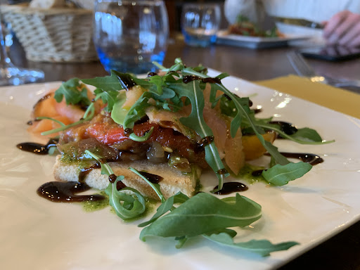 Concernant la partie restaurant, nous n'avions aucun choix, un menu à 40€ était imposé. Pour les végétariens ou les vegans vous n'êtes pas les bienvenus. La petite salade de légumes et saumon fumé servie en entrée était correcte. Le coquelet servi (façon cantine scolaire) avec une sauce bien grasse et insipide le tout accompagné d'une "soupe" à la patate douce ne méritaient pas d'extase. En dessert, la tartelette au caramel avec la crème chantilly tenaient grâce à l'excès de sucre, nous ne nous sommes pas risqués à une seconde bouchée par respect de nos coronaires. Au final, payer 60€ / pers (hors musiciens) pour un dîner aussi médiocre ne nous donne surtout pas envie d'y remettre les pieds. Un grand merci à la troupe de musiciens qui font passer...