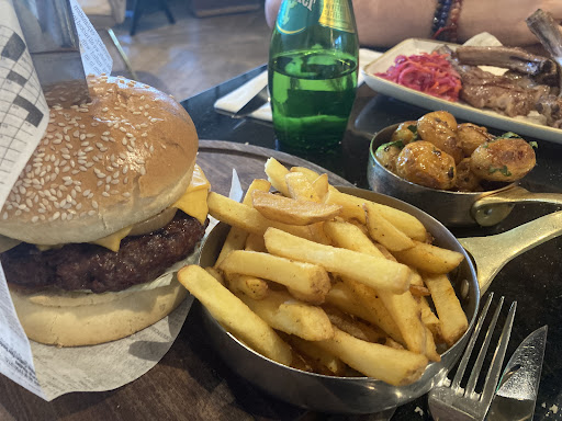 Read moreLe restaurant a été choisi par hasard. Cependant, nous n'avons pas le même point de vue. Le service était exceptionnel. Le réglage est assez somptueux même si le siège où j'étais assis n'était donc pas idéal pour manger tranquillement .La commande a été prise rapidement. Pour moi Burger et pour mon partenaire côtelettes agneau. `Concernant la côtelette d'agneau, celle-ci est parfaite avec la pure pomme maison et le grenaille.Super-plat. Concernant le burger classique, les frites sont très salées et le burger est bon mais j'ai eu la mauvaise surprise que le steak n'était pas bien cuit alors que je l'ai bien spécifié.Pour le prix, c'était plutôt cher. Puis mon partenaire a eu un dessert: tiramisu .Il a été assez déçu car celui-ci a un goût de tiramisu industriel et non du fait maison.Pour le prix du tiramisu, on peut s'attendre à mieux donc le bilan est assez mitigé. Nous allons essayer de revenir dans quelques mois pour essayer encore et voir si nous restons sur la même impression .