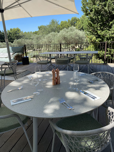 Le restaurant offre une vue imprenable sur lâancien hameaux et le massif des Alpilles.