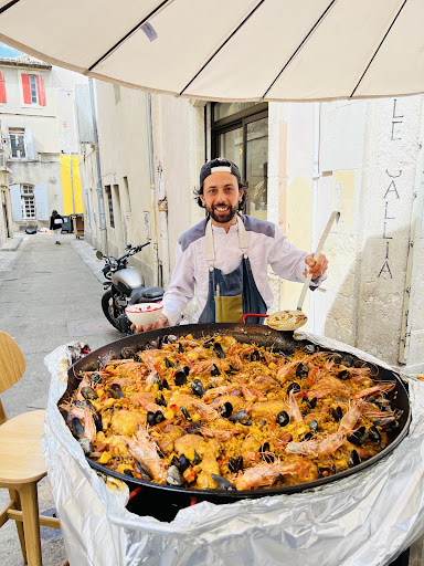 Incidentally there was a large pan of paella cooking outside. That was the “plat du jour”which caught our fancy. Besides that, we also ordered “Gardiane de Taureau et camargue aop”, (bull’s meat), then the wait and anticipation started. 😀