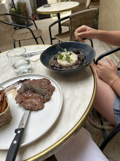 Read moreNote 5 tres étrange pour l’expérience que je viens de vivre. N’ayant pas eu le courage de choisir la côte de taureau de 500g ce soir par 30 degré mais n’ayant pas non plus trouvé la petite salade de saison, j’ai pris le burger dont le nom était sympa. Visiblement le cuistot ne goûte pas ce qu’il fait. Sans doute un des plus étouffe chrétien je j’ai jamais mangé. Un pain industriel un steak trop cuit, et pas la petite tranche de coeur de bœuf du marché ou d’oignon pour rattraper. Le degré 0 du burger. Le problème c’est que la carte est très minimaliste. Alors on se dit que les plats sont peaufinés. Ce n’était pas le cas de mon burger. Le café gourmand était du même niveau. Une micro madeleine (2cm) sans goût, une micro crème brûlée sans goût, à si celui du sucre caramélisé présent en plus grande quantité que la crème elle même. Pour vous dire, je ne fais jamais ce que fais à l’instant. Même quand je ne suis pas content. Mon but est juste de prévenir les autres personnes, rétablir une note (5!) qui a guidé notre choix et qui a pour moi gâché cette soirée de début de we avec mes amis. Et aussi de faire réagir les restaurateurs. Je ne parle que de ce que j’ai mangé. Mes amis ayant pris autre chose...