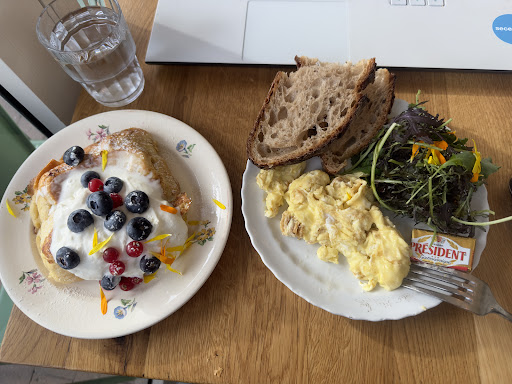 Read moreThis is a wonderful busy cafe with a perfect brunch menu and a caring, attentive staff. It's so popular, and rightfully so, that it's a good idea to make a reservation a day or two ahead of time to be sure you can get a seat at the time you want. My wife had the pancake, bacon and egg plate and I had the bacon, egg and cheese brioche sandwich and a pain au chocolat (one of the best I've had in all of France). Everything was excellent. Even the chocolat chaud and cafe...