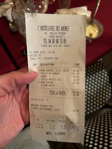 Read moreFresh and tasty food, nice service and beautiful view on Arles Arena! Flower decorations and water curtain producing a pleasant mist are extra benefits. The only issue were mosquitos attacking quite intensively (late evening, end of July) but it's probably a matter of relatively close nighbourhood of the Rhone river. Anyway, I would highly recommend this restaurant for tasty and...