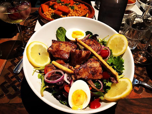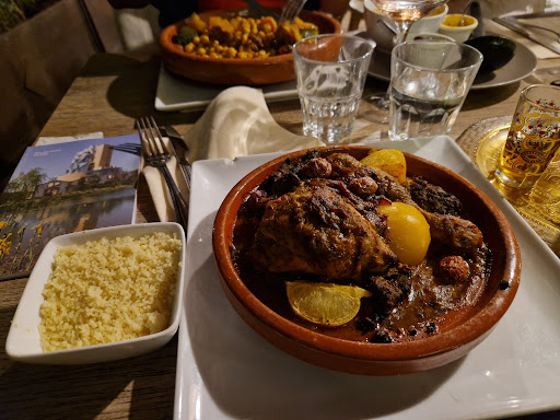 I think there has been a major change in management. The fish tajine was nice. But the couscous grains were minimalist - 3 tbs in a tiny ramekin. So I asked for a little more. And they added 2.50 euros for 4 tbs in another small ramekin. The price for 500g of couscous grains is 1euro. So I was disappointed. The lamb tajine was disappointing - the meat was flavorless, cooked until it became papier maché. We have eaten 7 hour lamb many times, I cook 7 hour lamb, but never has the meat become as mushy. And without flavor. And to add the final touch, one waiter dropped oily tomato sauce on my shirt... I recommend you go to Volubilis, a very nice marocan restaurant near the arena - the people are nice and the food...