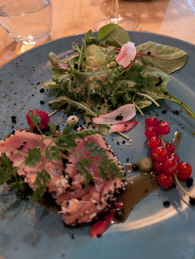 Read moreIt was great. We had 3 different starters, 4 different entrees, and 5 different desserts at a fixed cost of 30 euros per person. Each was exemplary in flavor and presentation, and focused on highlighting and accenting ingredient flavors. The wine as well was some of the best we have had, and not expensive. The desserts were also fantastic, and we recommend the nougat ice cream and the apricot lavender sorbet Service was excellent, and the waiters were helpful in both wine and food choice. The atmosphere was awesome. You can sit in a cellar or a courtyard and both are unique and beautiful. Interesting art scattered the cellar walls, and loudness was...