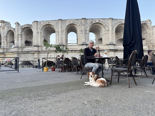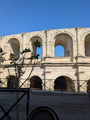 Read moreSearched for lunch spots before sightseeing Arles, and this place caught my eye with its €25 or 30 for two or three course, respectively - and in English. The experience was great, plenty of shade during lunch hour and a view of the amphitheater. The menu seemed to change weekly, which gave me a little surprise, but we were very satisfied with what we got. The leek fondue was an interesting surprise as a side dish. We tried the bull stew, fish of the day, and meat of the day. All were solid choices with good execution. Desserts were great as well: the lemon pie had authentic lemon cream topping that tasted like refreshing lemon, and the chocolate dessert was perfectly smooth. Great food, great atmosphere, and that amphitheater view made...