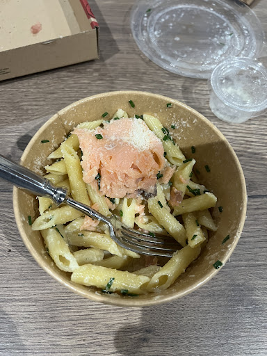 La pizza au saumon à 19€ : une margherita des plus basiques sur laquelle est balancée de la roquette sèche et pas assaisonnée. Le saumon, élément star de la pizza, n’est pas moins sec ni plus assaisonné, ni d’ailleurs mieux présenté. Tout le visuel respirait la sécheresse. Je me bois un grand verre d’eau et me lance en me disant que si c’est si laid et que rien n’est assaisonné, mais que c’est si bien noté, c’est que la pizza vaut son prix de part son goût et sa texture… Bah non. Pâte basique, goût de saumon en tranche de chez Leclerc. Les 19€ les moins bien investis de ma vie.