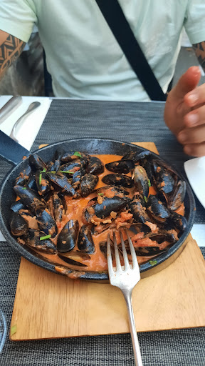 Read moreAlors… on va dissocier le fond (les produits dans l’assiette) et la forme (la qualité du service) Dès la réservation on a senti un manque d’intérêt de la patronne malgré une table de 8. A notre arrivée la sensation se confirme… et malgré notre table devant l’entrée avec une serveuse qui fait le pied de grue dans l’encadrure de la porte personne pour prendre notre commande… d’apero. 🙃 Ensuite on demande conseils sur la carte mais les réponses fuses « chausson à la brandade … c’est de la morue / plats enfants ? Non c’est hot dog ou pizzette (les entrées) » Ensuite on a eu le malheur de demander une briquette de frites supplémentaires pour les moules… oh la la quelle erreur ! « Non ce n’est pas possible on ne vend pas les frites seules sans plat, on fait des frites maison (quel rapport) en quantité équivalente aux plats dont c’est l’accompagnement… on a fait 90 couverts ce midi… » alors même si la logique se comprend la forme peut être revue. Surtout qu’on a eu le droit dans la minute à voir surgir le chef et son commis sur la terrasse en mode gendarme ! 👮♂️ Sinon le contenu de l’assiette est cohérent les plats sont bons sans être transcendants mais dommage à cause de l’absence de sens commercial on s’est arrêté aux plats … sans tester les desserts. Donc avis vraiment mitigé… c’est pas mal mais fuir...