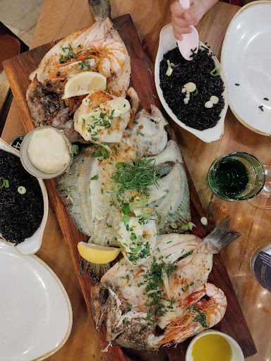 Nice place located in front of the port. Lots of people waiting to enter, if you looking for a quiet place this is not the place to come, it's very noisy. The food was some very good some a bit less, the cuttlefish was divine..really soft like butter, the prawns, turbot and seabass grilled also very nice. Pasta probably precooked because it arrived after less than 5 minutes, was very soft indeed even if the seafood inside was nice. 132 euro for what you see in pictures plus 2 glass of wine, is the average here for this food so nothing unexpected plus is a good location. A bit of chaos in front of the restaurant but overall good place!