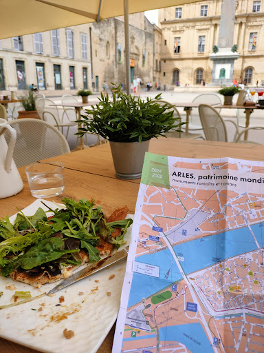 Read moreRare find: decent food at a touristy square. Nice view of the plaza and St. Trophine's romanesque facade. Gallete crêpes are soft and hardy, generous portions, quality ingredients. Great stop for a quick lunch or afternoon coffee (/ ice cream) break. Wasn't a fan of the amarena but wow 😲 pistachio ice cream literally tastes like you're eating frozen pistachio...