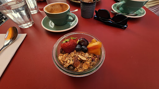 The "House Granola" was a) tiny and b) like the texture of wood chips - perhaps this is my fault as I did not see "gluten free" on the menu when I ordered it. The fruit was lovely but hardly worth the €7 compared to others I have had in France that are substantially more generous and satisfying.