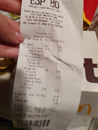 Après quelques mois j ai voulu donner une nouvelle chance a ce restaurant et surtout les enfants me le réclamer. Et bien nouvelle déception, on m explique qu ils ne prennent plus les tickets resto, alors que les autres McDo les acceptent. A croire que la direction de ce restaurant fait tout pour faire couler son affaire.On marche sur la tête. Je vais continué à aller chez BK et je vous conseillé de faire de même. J ai voulu faire une réclamation a McDo France, il faut faire un courrier, a l heure du numérique je pense que c est une stratégie pour décourager. Ou sinon par téléphone en semaine, de 10 a 14h, pendant que tout le monde bosse, comme ça ils n ont plus de problème de réclamation. Bien joué Big M, mais le jour où la concurrence arrive, c est fini pour vous...