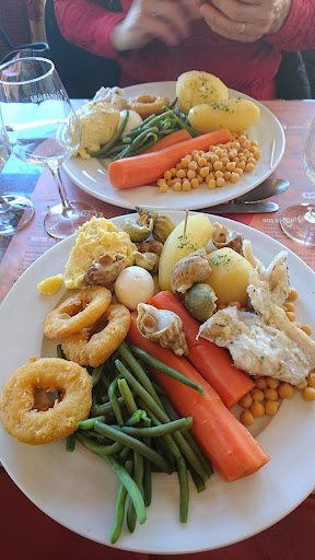 et à en lire les critiques, c'est à ne pas manquer, tous les avis sont très positifs ...et c'est merité! Le couple dynamique Brigitte en salle et son mari en cuisine tiennent l'affaire depuis plus de 10 ans, ils sont partisans des bons produits frais, et du fait maison " le vrai" pas celui qui est juste rechauffé, assaisoné ou sorti des frigos! Ici pas de chichis, ambiance familiale Bistrot et c'est bon et très copieux. La serveuse nous previent, -pas d'entrée, y aura pas la place, c'est Aioli et dessert! effectivement vu la taille des portions il vaut mieux ne pas se charger pour garder une petite place pour les très bons desserts, eux aussi sont maison et executés de main de maitre du papi en personne 86 ans, patissier de metier ainsi les tartes babas, moelleux et gâteaux sont de véritable délices. le vendredi c'est grosse journée, et le couple des parents âgés viennent à la rescousse retraite ? qui parle d'âge de la retraite? les clients ne s'y tromprent pas et cela donne une ambiance familiale très conviviale formule à prix imbattable 15.50€ vous n'aurez plus qu'à rajouter un bon Beaumes de Venise Blanc et un café ( servi avec des meringues aux amandes amères) . Pensez à reserver votre table, car sinon peu de chance d'avoir une place. La gentillesse règne en maître et à la fin du repas apres le coup de feu, le cuisinier vient voir en salle si les clients sont satisfaits On en voudrait dans chaque petit village des restaurants comme O' Bistrot Gourmand.