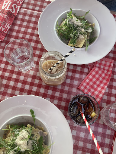 I got the caprese salad, fully intending to get pasta after but didn't because, like everything else, it was strange and fell short. The burrata and tomato were amazing- but it came with random green lettuce (no basil, no herb) and pumpkin/squash skins. I'll admit the skins were fine, it was very strange. There was no flavor in the dish. I had to add salt, pepper, oil and balsamic .