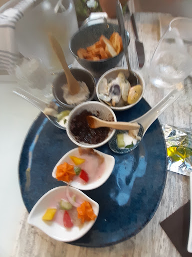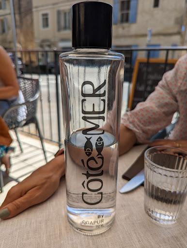 Mais des points à améliorer : le rapport quantité prix... Certes le prix de la matière première a augmenté, l'électricité, les salaires aussi... Mais en entrée, un ceviche de daurade d'une centaine de grammes (maximum) ça ne fait pas beaucoup... Les assiettes de fruits de mer ne sont pas mieux garnies... Et en plat, un filet qui ne doit pas peser beaucoup plus.... La soupe est bonne, mais l'assiette façon bouillabaisse manque cruellement de poisson ! Entre les croûtons et la soupe on ne part pas en ayant faim, mais quand même... un point rédhibitoire pour ma part : nous n'avions pas fini notre bouteille de vin. Nous avons donc demandé un bouchon pour l'emmener. Nous sommes partis avec la bouteille à la main ! Excusez-moi mais c'est dérangeant ! Se promener en ville avec une bouteille à moitié pleine (ou à moitié vide comme vous voulez...) ça la fout mal !!! Le minimum c'est de donner une poche au client, qu'il ne fasse pas pochtron en sortant du restaurant !
