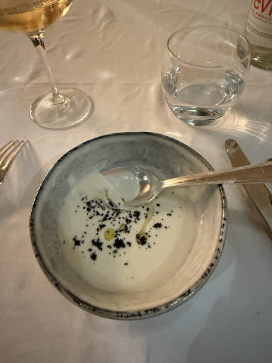 The following has nothing to do with the restaurant's food review, but is relevant to the exceptional service. I'm American from San Francisco Bay Area California, and unfortunately, while it was entertaining and laughable for a minute like an old-school comedy sketch 😉, there was a family from somewhere else in America (I say that because the parents were discussing retiring to California or other locations with their very loud young adult son), who came in after me and who you could hear all over the restaurant that didn't know an Entrée was a starter in France (as the word says) and said that an entrée is a main in the US but the two men ordered Entrées alone, anyway. When they first sat down, the woman pulled out her phone and rested it against a glass on the table, pointed at herself and adjusted her face, hair and scarf, meanwhile had put her brand new (I say that because her husband commented that a tag was still on it) Dior handbag on top of the table on the tablecloth and taking off her newly purchased jacket while seated so the inside neck was hanging out over the back of the chair so that you could see the brand new store tag hanging off of it and commented about it still having the tag on it. She proceeded to tell the waiter of this exquisite restaurant that she didn't like an ingredient in the sauce in the main that she wanted to order and had the chef give her a sauce from another dish instead etc. Meanwhile, the son is dominating the room with his discussion about what happens when a friend of his gets drunk. All of that's why I said, laughable for a minute… classic comedy sketch. Very embarrassing for the rest of us Americans and I felt bad for the server who was very gracious and attentive to them, despite it all. I do wish when people come abroad, that they would at least look things up on their phones and use the translate app before they decide on a restaurant and order. This little story is to illustrate the exceptional...