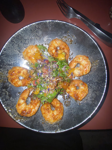 We enjoyed two delicious dishes here...a shrimp "appetizer" salad with avocados and a variety of veggies. And a vegetarian dish of grilled eggplant stuffed with goat cheese. The latter was like a veggie smorgasbord with grilled squash, carrot, radish, leek, mushrooms and rice with steamed cauliflower and a mild curry sauce. Both were outstanding and were large servings. Beware...mosquitos were a problem at 7-8 pm but the restaurant staff provided spray insect repellent and a burning insect...