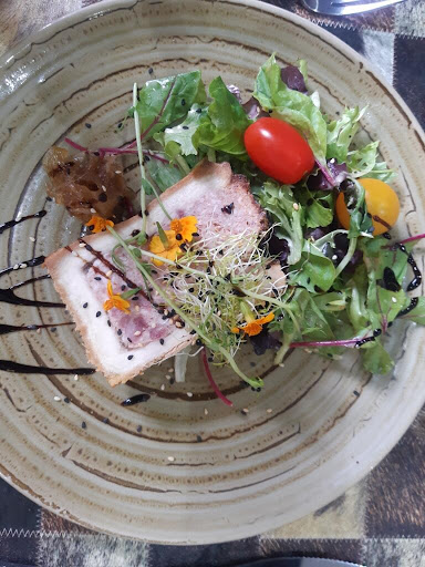 Read moreDans le cadre d'une smartbox table des chefs d'une valeur de 100e, je pensais pouvoir choisir dans la carte ayant dĂ©jĂ repĂ©rĂ© les plats, on nous prĂ©sente une ardoise avec choix de 2 entrĂ©es 2 plats 2 desserts, donc dĂ©jĂ un peu déçue, certes j'aurais dĂ» me renseigner...en entrĂ©e gravlax de saumon aux agrumes ou ravioles au jus de truffe et jambon de pays, le gravlax excellent, trĂšs rafraichissant, jolie prĂ©sentation, les ravioles trĂšs salĂ©es, pas facile de dĂ©guster dans la cassolette...Les plats au choix filet de bar ou pavĂ© de boeuf, pour ce prix nous nous attendions Ă mieux, les mĂȘmes lĂ©gumes servis pour les 2 plats, fades et dressĂ©s Ă l'arrache, pas de recherche de prĂ©sentation, le poisson Ă©tait bon, la piĂšce de boeuf aussi...Les desserts nous ont laissĂ© sur notre faim alors que c'est ce que nous retenons le plus, je ne pense pas que ce soit du maison, trop lourds pour les tubes chocolat moi qui suis une fan de sucrĂ© je n'ai pas terminĂ©, et l'assiette gourmande sans trop de saveur...Le cadre fait plutĂŽt penser Ă une salle des fĂȘtes, pas de dĂ©coration, froid, nous aurions eu une plus belle expĂ©rience en venant le midi l'Ă©tĂ© en terrasse, dommage ! Sinon le service et l'accueil Ă©tait trĂšs bien, rien...