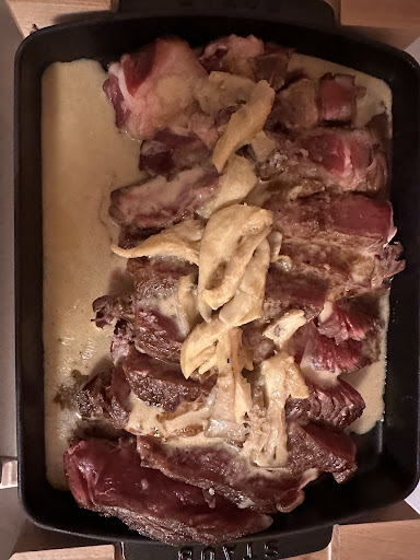 Read moreFirst time we tried to go, we arrived at 9pm and they told us they were not serving dinner anymore (they have 4/5 tables and the restaurant was far from full, and online it showed that they close at 11pm). The second morning we went for lunch and the same thing happened. So we tried the third time for dinner, we made sure to arrive early this time (7pm). I had a glass of wine (or half oneâŠI dont know how they actually measured it). We ordered the angus and were quite disappointed. The meat seasoning tasted like fat (which overcomes the flavor of the meat), it said the potatoes were homemade and cooked in beef fat, they tasted like frozen fries. They ddnt have any side sauces for the meat, we were able to get some mustard though. The portion was quite small, I doubt it was really 1.2kg. We tried âcote de boeufâ in several places and usually it is hard to finish it, this time we left hungry. Overall we were disappointed with the place. The service was fine and the food okay, but it has so much more potential and has a lot of room for improvement. Itâs overpriced for what you get. It seems like it wants to be a fancy(ish) place but has a lot of things to improve.