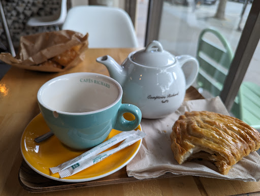 I stopped in this charming bakery after an early appointment for breakfast. I had chouquettes, moist and caramelized, and a chausson aux pommes, with no trace of cinnamon, (why can't Californian cook applesauce without cinnamon?). It was very friendly, most of the customers were regulars, welcoming each other, asking about their grandchildren... Typical vie...