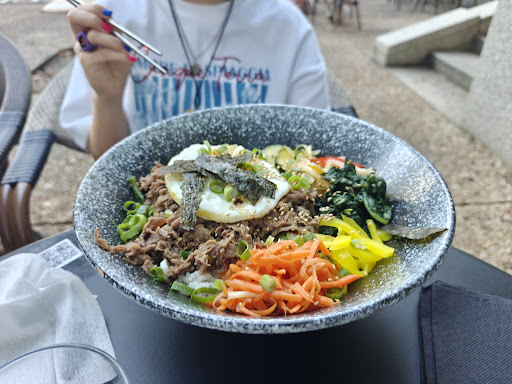 Great joint on la defense promenade , short walk from 4/5 metro exit from Hotel melia side . The menu is not very elaborate but perfect to give you enough choice . Nice choice of drinks. I tried yuzu drink without alcohol and was really refreshing with lemon flavor. Last time have tried alcohol based cocktails and they were good too. Bibimbap was very large qty for one person , though it was super yummy I could not finish it . I think it had atleast 350 gm chicken pieces in it . Egg was so perfectly fried with runny yolk like I like and chicken was delicious and well cooked . It wasn’t very spicy for my taste though it looked hot red , it had great taste retained and perfect spices . Vegetables were plenty and perfectly cooked too and rice quality good too. The interior space is very nice and large with long seating though in summer my preference was to opt exterior seatings which also is set at 2 levels. Staff is courteous and prompt and overall very nice time I had . Will visit again when I...