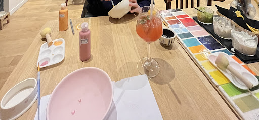 Le lieu parfait pour faire parler sa créativité, raconter sa vie, boire un coup et manger un bout. Accueilli avec le sourire et reparti avec le sourire. Superbe expérience de début jusqu’à la fin. Le concept est simple, vous choisissez une pièce en céramique, vos couleurs pour la peinture et à vos pinceaux ! Même si vous êtes pas du tout un as du dessin ou que vous créativité s’approche de zéro, on vous accompagne du début jusqu’à à la fin en vos donnant des conseils, des techniques et même des fois un petit coup de pinceau. À faire seul, en famille, entre amis ou collègues et le matin, l’après-midi ou bien même le soir. Bonne idée pour votre futur date ou bien l’anniversaire de votre enfant avec ses copains. Tapas, planches de charcuterie et fromage ou bien bonbon et gâteaux, c’est vous avez un creux, il y en a pour tout les goûts. (tapas fait maison !) Autrement le choix de vin et de bière est large, prix raisonnable pour les consommations. (laissez-vous surprendre par le cocktail Gaby !)