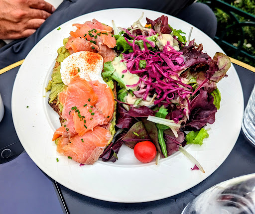 It was fairly busy and we got a table outside. I had a glass of wine + their spinach salad, both were very good. My husband got the avocado toast which was very average. The good weather and the ambience helped us get some rest before we continued our trip. Oh and the bathroom area in the...
