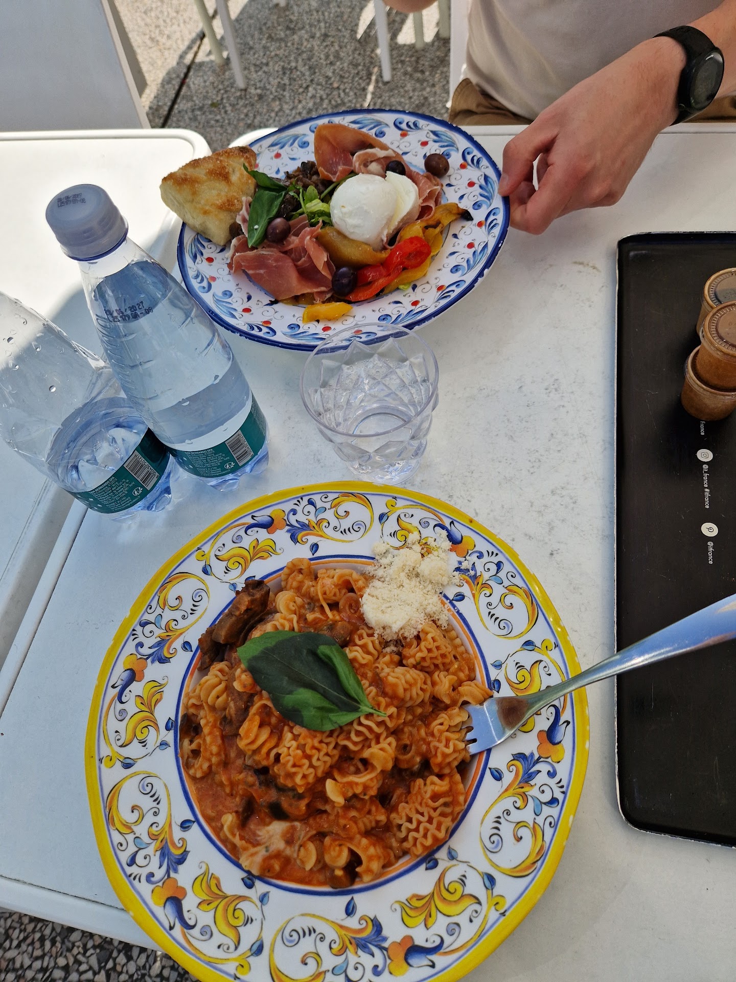 When I went in to ask for the remaining cheese, they said there was no gorzonzola that day. And offered grated parmesan instead of pieces. And also extra pieces of mozzarella. ie...only mozarella. Or to return the plate. I told them that we started eating from the plate.
