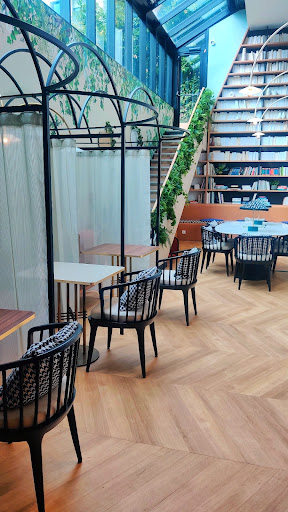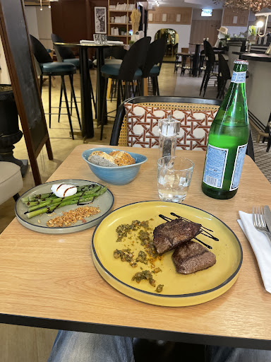 Read moreTrès bel espace / hall d'accueil où je vais de temps en temps faire mes séances téléphoniques de coaching. Espace du fond avec rideaux de séparation entre les tables sympa mais il faudrait penser à aménager des espaces un peu insonorisés pour les appels téléphoniques. Avec le casque je parle fort et tout le monde entend (j'ai dû après gentille remarque de la serveuse mettre mon casque un peu de côté). Belle cuisine (les pâtes à la truffe et la salade étaient délicieux). Service un peu aléatoire (bien le midi mais pas du tout servie un soir, mais trop occupée à un coaching tel pour...