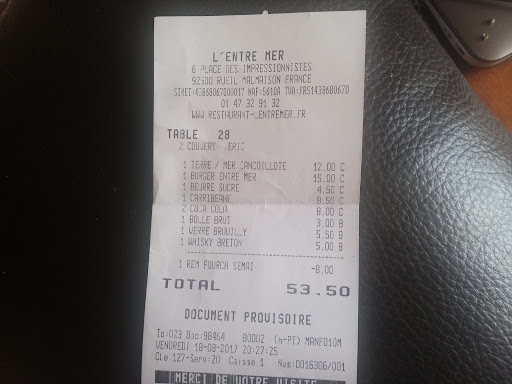 j'ai pris un Burger Entre Mer, autant le Steak du burger est bon, la réalisation est moyenne, les pains du Burger est Correcte sans plus, Les Frites ou Pommes Frites sont surement surgeler en gout les frites sont médiocres et pas très fraîches.