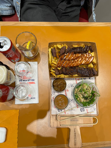 Read moreJe vais déjà parler du repas. Très bon, le bœuf le poulet et la saucisse de montbeliard étaient très bon, bien cuisinés, et les frites maisons excellentes. Par contre, concernant la personne qui nous a encaissé était d’une malhonnêteté poussée. On vient à 4 collègues de travail. On voit sur la table qu’il y a 5€ de réduction pour la première commande en créant le compte. Aucun de nous ne connaissait ce type de restaurant, on se dit pourquoi pas et c’est plutôt sympathique. Nous sommes que collègues de travail chacun paye son addition. Le première collègue donne son numéro de téléphone pour retrouver le compte et bénéficie des 5€ de réduction. Vient mon tour. Je vois le montant sur le terminal bancaire et je lui dis que j’ai aussi créé mon compte pour les 5€. L’employé me dit qu’il a déjà fait la réduction à mon collègue avant. Étonné je lui demande des explications et cette personne me dit que c’est écrit en gros sur l’affichette. Je lui dis que si nous devions venir à 10 personnes pour la première fois ça serait donc 0,50€ pour chacun ? Il me dit oui. Je prends l’affichette pour lui demander où se trouve en gros la mention, et là, décontracté il me dit c’est écrit en petit là. Je ne me souviens plus de la phrase mais c’était écrit du genre valable sur une addition. Peut être qu’un responsable viendra me répondre avec la phrase exacte. Je lui fais savoir que ce n’est pas professionnel de ne pas le stipuler avant, et surtout de déduire la somme sur une seule addition et pas sur les autres. En gros on me dit que c’est comme ça . Un midi en semaine c’est entre collègue de travail, pas en famille, donc chacun paye sa part ! Je retournerai volontiers dans cette franchise ou ce type de restaurant, mais pas à celui de La Défense.