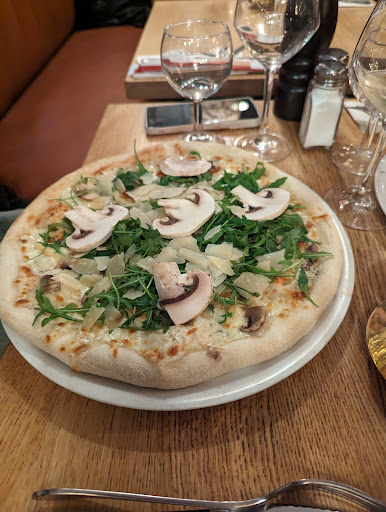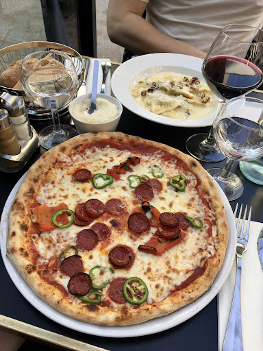 Read moreUn déjeuner à la Piazetta c’est se retrouver sur une terrasse au soleil loin de Paris et de ses bouchons… un vrai dépaysement des papilles grâce à une assiette de légumes confits avec de jolies tranches fines de jambon italien couchées sur un lit de roquette et quelques morceaux de parmesan .. tout ça à partager en toute convivialité tout en dégustant un verre de vin blanc.. blanc ? Peut être rosé ou rouge ? Je ne me souviens plus ..je décollais grâce à mes papilles au soleil ou plutôt sous un beau parasol noir en harmonie avec le décor : le marché couvert juste à côté .. je le craignais bruyant et pas du tout ..un charme ambiant, une jolie architecture qui va bien avec le style du restaurant .. après une entrée des parts de pizzas tout aussi bonnes les unes que les autres .. une pâte légère et croustillante à souhait .. pas la pizza lourde qui vous reste que l estomac non .. vous prendrez bien un dessert ? Demanda le gentil serveur Silvio.. je me dis alors plus trop faim .. allez si ..pour un tiramisu ou une salade de fraises y a finalement pas de problème .. restera un café et le sourire de la serveuse à l’addition et le tour est joué.. bon appétit à ceux qui liront ces quelques lignes en espérant que vous irez découvrir et partager en bonne compagnie aussi cette parenthèse de bonheur italien en compagnie de Jean Charles et son équipe .. vous m en direz des nouvelles...