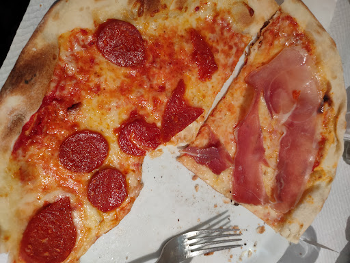 Nous avons commandé 1 margherita et 1 calzone La margherita était bonne, juste un peu trop salée Au préalable nous avons demandé au téléphone si c'était bien de la mozzarella dans la pizza calzone, on nous a répondu que oui, de la mozzarella spéciale pizza. Résultat pas de mozzarella mais une quantité astronomique de gruyère, à l'intérieur ainsi qu'une couche supplémentaire sur le dessus, comme si il y en avait déjà pas assez! Il y avait 2 qualités de jambon à l'intérieur, une qui semblait pas mal du tout et une autre, type jambon industriel bas de gamme très salé et sans saveur(bien sur ce dernier était beaucoup plus présent que le premier). Pour finir l'oeuf était ultra cuit donc pas de jaune coulant, après c'était pas très grave vu le reste) Donc première et dernière commande dans cette pizzeria, j'ai mis une étoile en plus pour la margherita. Autre point positif, les pizzas sont grandes mais je préfère une pizza plus petite avec une meilleur qualité de matière première