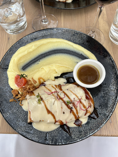 A typical French bistrot where you pay more for the ambiance than the food. The restaurant itself is beautiful. We were super excited to try it out as we were considering it for our wedding reception, but the food let us down. First I ordered the petite assiette de charcuterie ibérique variée, but she brought us jambon para negra instead…and charged us for it. 50 cents isn’t a big difference but it also wasn’t what we ordered. Next the gravlax…it didn’t taste marinaded in agrum at all and we had to add some salt for flavor. Though the little dots of sauce added some flavor. The burger was fairly basic and the truffle aioli that came with it is obviously not great quality. It was so thick and heavy and the artificial truffle flavor was way too overused. The supreme de volaille was okay…it tasted fine but the carrots were strange with it- both presentation and taste. It actually didn’t have any flavor. And there was a very watery curry sauce that came with it and just didn’t fit with the dish at all…we were super confused as to why it was on the plate. And finally, dessert. She again tried to bring us something we didn’t order and this time we refused it. The mille-feuille we did order was not very good…they put it on a hot plate and so it melted and fell over before it even came to us…yet they still served it to us. First we thought it was “artistic” then saw that others had standing ones, so it’s appalling they would serve a plate like that. Overall, maybe I’ll come to take a drink on the terrace with a snack, but I won’t be buying a whole...
