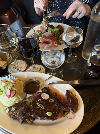 I was in Paris for a business meeting and stayed in hotel Charlemagne. This restaurant caught my eye as it is across the street from the restaurant. It is located was outside the Hotel Charlemagne. I took a picture from my balcony. To me it looked like a neighbourhood pub because people liked to hang out here. Very friendly staff (with a big smile) and good food that was served quickly. Great wine as well, pinot noir. I will come back and make them my friends. Tip: entrecĂŽte. Like: no pressure, very relaxed place and nice - not loud - jazzy background music. I will definitely come...