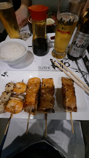 Accueil froid de la « propriétaire gérante? » derrière le comptoir. Attente assez longue (15mn)...après prise de commande, sans même avoir les boissons.Service désordonné ... le personnel en salle semble hésiter pour apporter les plats qu ils ne savent à qui servir. Avons été servi après des clients arrivés après nous...Les mets sont ordinaires...le poisson est frais: normal (!) et le riz n a rien de japonais quant à la soupe c est un bouillon clair grisâtre sur lequel flottent 2 ou 3 fines lamelles de champignons « de Paris ».Les brochettes de saumon sont immangeables tellement elles sont cuites et desséchées....LA « brochette mystère » = goût indéfinissable!? nous a été définie comme étant des « noix de saintJacques »! Au regard de notre étonnement il a été confirmé que c était des « boulettes de poissons » et coupées en 2 pour la brochette= Réellement mauvais...Les gyosas été trop frits donc durs.Un seul serveur « subalterne » semble vraiment s épuiser pour être partout...merci à lui! mais ça ne suffit pas. La salle est vaste et elle n était pas complète, cependant un bruit épouvantable régnait, résonance considérable et gênante...quant aux « lumières tamisées » elles ne sont que sur le descriptif, c est un éclairage blanc et froid. A noter qu on s occupe plus des commandes à livrer que de la clientèle sur place. L addition qu ‘on vous demande de payer à la caisse....elle, est ENFIN correcte...OUF! Il y a des restaurants japonais dans les alentours , avec un espace plus petit et une déco moins « tape à l œil » mais qui méritent...
