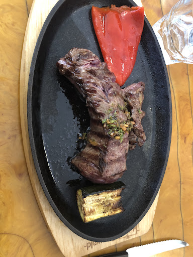 I have a second home about 30 minutes drive from Aubusson. I decided to make a day trip to the tapestry museum and have lunch locally. I booked a table online for a Thursday lunchtime at 1pm. Well advised it was busy. Service was great, fast and friendly. Lovely warm atmosphere with people talking and retro 80’s pop music in the background, not intrusive at all. We both opted for the steak served medium. We had a glass of wine each and two espressos to finish off. Couldn’t manage a dessert after the huge entrecôte. We had a mushroom sauce and a chimichurra sauce with the steaks. It comes with frites and a side salad. The steak was delicious. I’d definitely recommend this place and will go back. Total bill was €49. The town was lovely to wander around and the museum of tapestry...