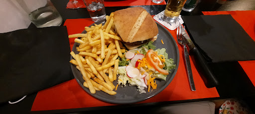Read moreFuà con mi novia, sin reserva. Nos hicieron hueco råpidamente. La hamburguesa estaba rica, las patatas bastante grasientas, la pizza normal. Lo mejor, sin duda, fue la mousse de chocolate. Todo 33⏠con cerveza y vino (el vino perronero). Tienen pizzas para llevar, el sitio es bonito y se puede pagar con tarjeta. La dueña es amable pero ni idea de español ni inglés, asà que gestos y risas y nos apañamos. Lo recomiendo para parejas, amiges, o familias que quieran disfrutar de un rato agradable...