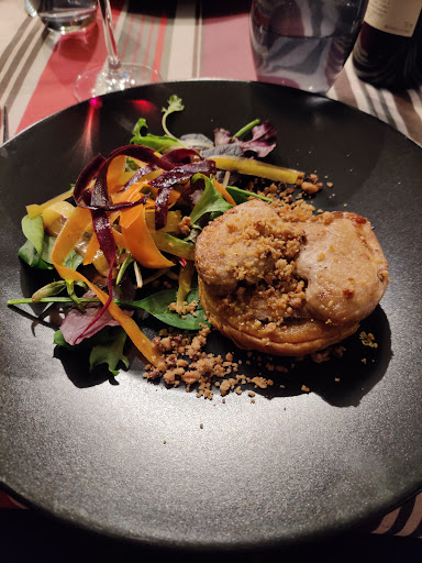 Read moreDéçue Cocktail maison n'est autre que du jus multi fruits + 1 très légère touche de rhum Foie gras qualifié de mi cuit trop fade et texture compacte et grasse en bouche sans etre fondante, insipide pas digne de notre belle région Je pense en étant honnête que c'est le plus mauvais foie que j'ai mangé J'avais faim ... Cassolette d'automne au cabecou dont le goût trop marqué emporté la saveur des marron et autres produits. Dommage que des graines de citrouille restent car désagréable en bouche Le bar est par contre très bien cuit et très bon ainsi que la petite compotée de légumes qui l'accompagnait Mais pas le petit écrasé de patates douces ( soi disant mais pas su retrouver la saveur pour moi que des pommes de terres) que je n'ai pu manger car acide ! Le dessert écœurant avec des quartiers de pommes crues qui baignaient dans une sorte de crème anglaise ou l'on sentait effectivement un peu l'amande et qq marrons Mauvais choix de dessert certainement mais choix par défaut car erreur du serveur Serveurs sympathiques Peu d'attente entre les plats Ambiance déco simple et disposition des tables un peu cantine certainement dus à un groupe derrière nous très bruyant Même si nous avons apprécié le fait qu'ils acceptent notre réservation pour 2 à 21h15, nous n'avons pas pu choisir le menu surprise ( plus long) alors qu'il a été servi à plusieurs personnes derrière nous qui l'ont pourtant commandé en même temps que nous . Ils ont été servis après nous et nous avons quitté le restaurant bien avant eux Nous ne les aurions pas retardés Dommage Une adresse que je ne retiendrai pas pour l'ensemble de la cuisine qui nous a beaucoup déçus Addition un peu salée pour 2 cocktails 1 menu entrée plat dessert + 1 menu entrée plat + 1 petite bouteille de vin cotes de gascogne (37.5 cl) pour 94 à 2 ! Rapport qualité prix...