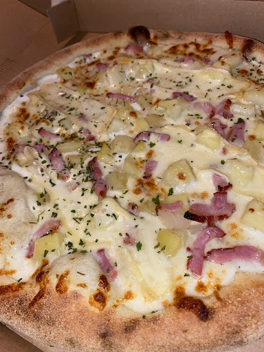 Une pizzeria qui vaut le détour. Trois pizzas commandées et livrées dans les temps. Leurs saveurs sont très bien équilibrées : pas trop lourdes, pas trop salées. (Oui, je suis un peu difficile.) Quant au jambon, ce n'est pas du surgelé, cela fait vraiment plaisir. Enfin, merci ! Concernant la garniture, c'est très correct, rien à redire. Par les temps qui courent, ils restent dans la moyenne des prix, et au moins on a le ventre plein.