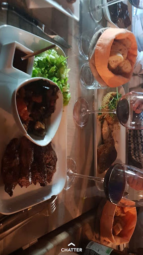 Repas : 6 pers Planche charcuterie avec de bon produit quoi que un peu cher ( 18 e de mémoire, une moyenne sur Aurillac mais pas ses alentours ) Le tigre qui pleure était, indescriptiblement bon! Coup de coeur! Les légumes qui l'accompagne était bon, je recommande une garniture supp poir les gourmand . Le bar était également très bon, malgré un taboulé un peu léger qui attend une garniture également (même pour un petit mangeur ) Le classique, l' entrecote et ses frites était bon également, à la hauteur de ce qu'on peut trouver ailleur ( à noter que ce soir la ce n'était pas de la salers mais une charolaise ) Niveau dessert Un café gourmand qui vaut le détour ! Mais je vous laisse la surprise de le découvrir Pour les très gourmands, pensez profiteroles ;)
