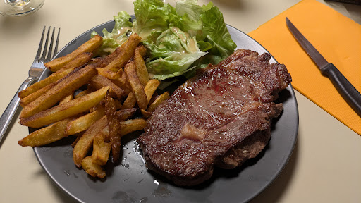 Ambiance & accueil : À notre arrivée, nous avons été « accueillis » par un serveur qui nous a lancé un « Quoi ? » à la place d’un bonsoir. La salle, à moitié vide, sentait le renfermé, et les nappes tachées semblaient dater d’une autre époque (probablement la même que les rideaux jaunis par la fumée). L’ambiance était froide, mais pas au sens chic : plutôt glaciale et hostile.