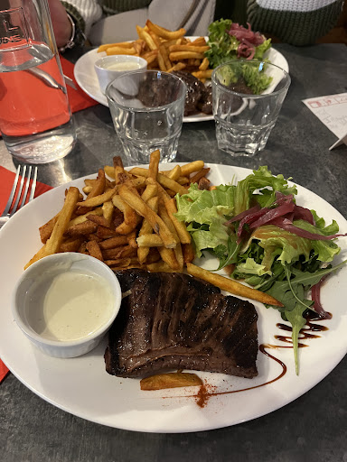 11€ le steak de Salers, frites, salade, soit 3€ de plus que le prix d’un sandwich aux alentours, je n’ai pas hésité un seul instant. Un petit effort sur l'accompagnement et les sauces proposées seraient appréciables.